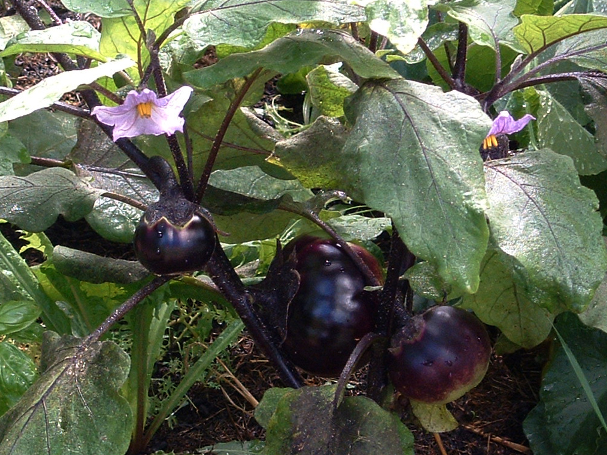 Aubergine Obsidian ist eine robuste Aubergine mit schwarz-violetten und runden bis plattrunden Früchten, die über einen frischen und bitterfreien Geschmack verfügen. Obsidian kann vollsonnig und geschützt im Freiland oder im Gewächshaus / Folientunnel kultiviert werden. Ein Anbau in großen Töpfen an einer Südwand bei guter Wasser- und Nährstoffversorgung ist ebenfalls möglich. Aubergine Obsidian reift frühzeitig mit einem Erntebeginn ab Mitte Juli. Samenfeste Auberginensorte, die ursprünglich aus Nordchina stammt.