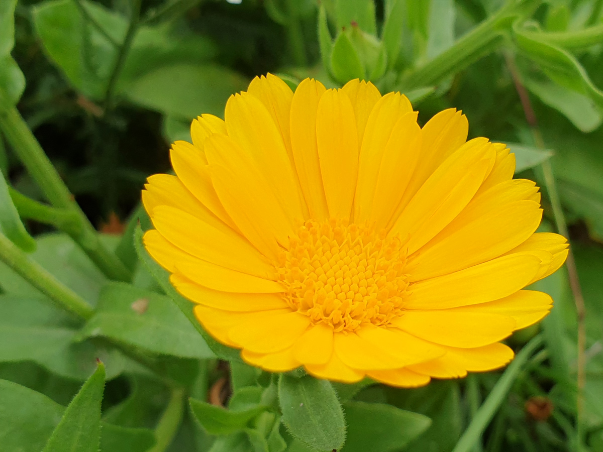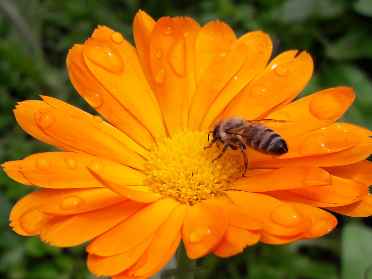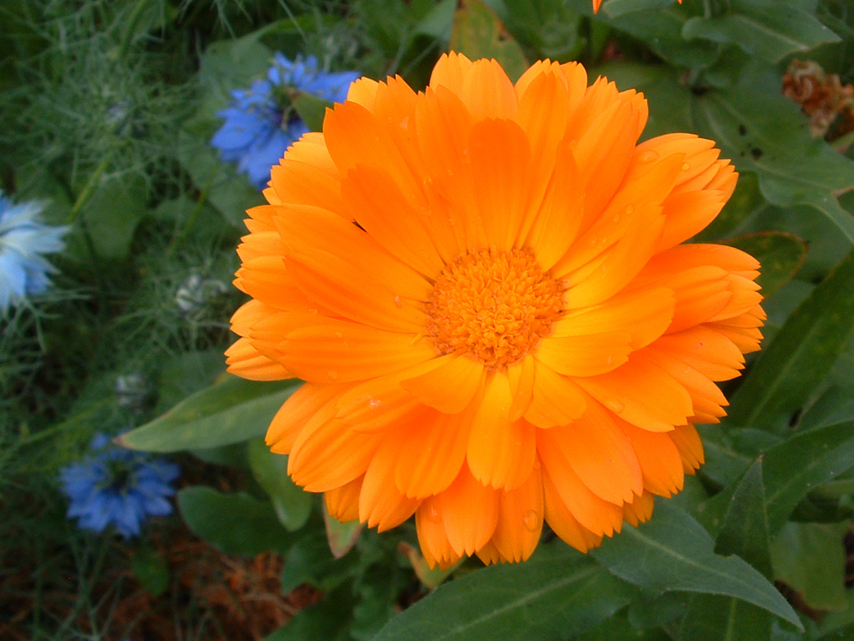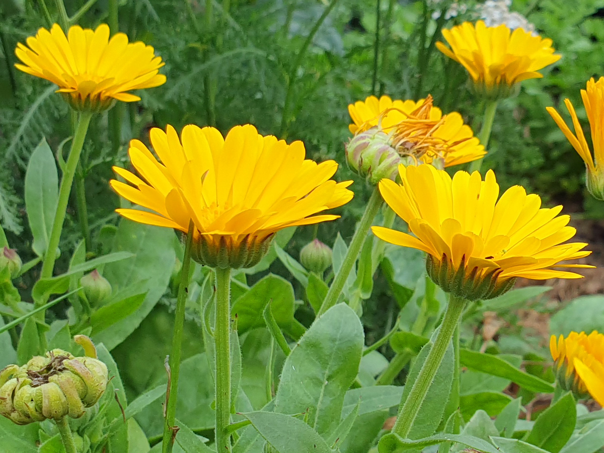 Samen der einjährigen Ringelblume. Mischung orange- und gelbblühend mit einer Höhe von etwa 50 cm, teils gefüllt und teils ungefüllt. Ringelblume oder Calendula ist eine alte Heilpflanze und wird in der Kräuterheilkunde als Salbe bei Verbrennungen und schlecht heilenden Wunden angewendet. Die Blütenblätter sind essbar, beispielsweise in Kräuterbutter und in Salaten oder ganze Blüten getrocknet für Teemischungen. Außerdem ist die Ringelblume als Zierpflanze eine gute Insektenweide und unterstützt die Bodengesundheit auf Grund ihrer Wurzelausscheidungen. Gut geeignet für die Mischkultur mit Gemüse und Kräutern. So kann die Ringelblume beispielsweise schädigende Wurzelnematoden an Petersilie vertreiben.