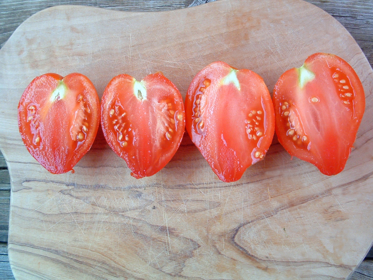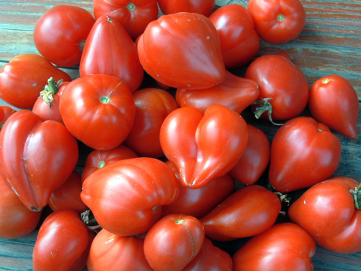 Samen der Roten Herztomate, einer eher kleinfrüchtigen, roten und herzförmigen bis keilförmigen Tomate. Die Früchte erreichen eine Größe von etwa 4 bis 7 cm und verfügen über einen sehr guten Tomatengeschmack. Die Pflanzen blühen überreich und fruchten in großen Trauben, Massenträger. Lange Ernte bis zum Frost. Regengeschützter Anbau empfohlen. Ein nicht zu stark gedüngter Boden fördert die hübsche Herzform und das gute Aroma. Sehr seltene Tomatensorte, die wir ursprünglich aus einem Saatgutarchiv erhalten haben.